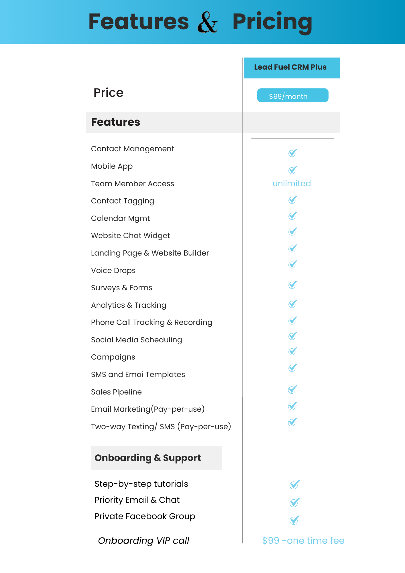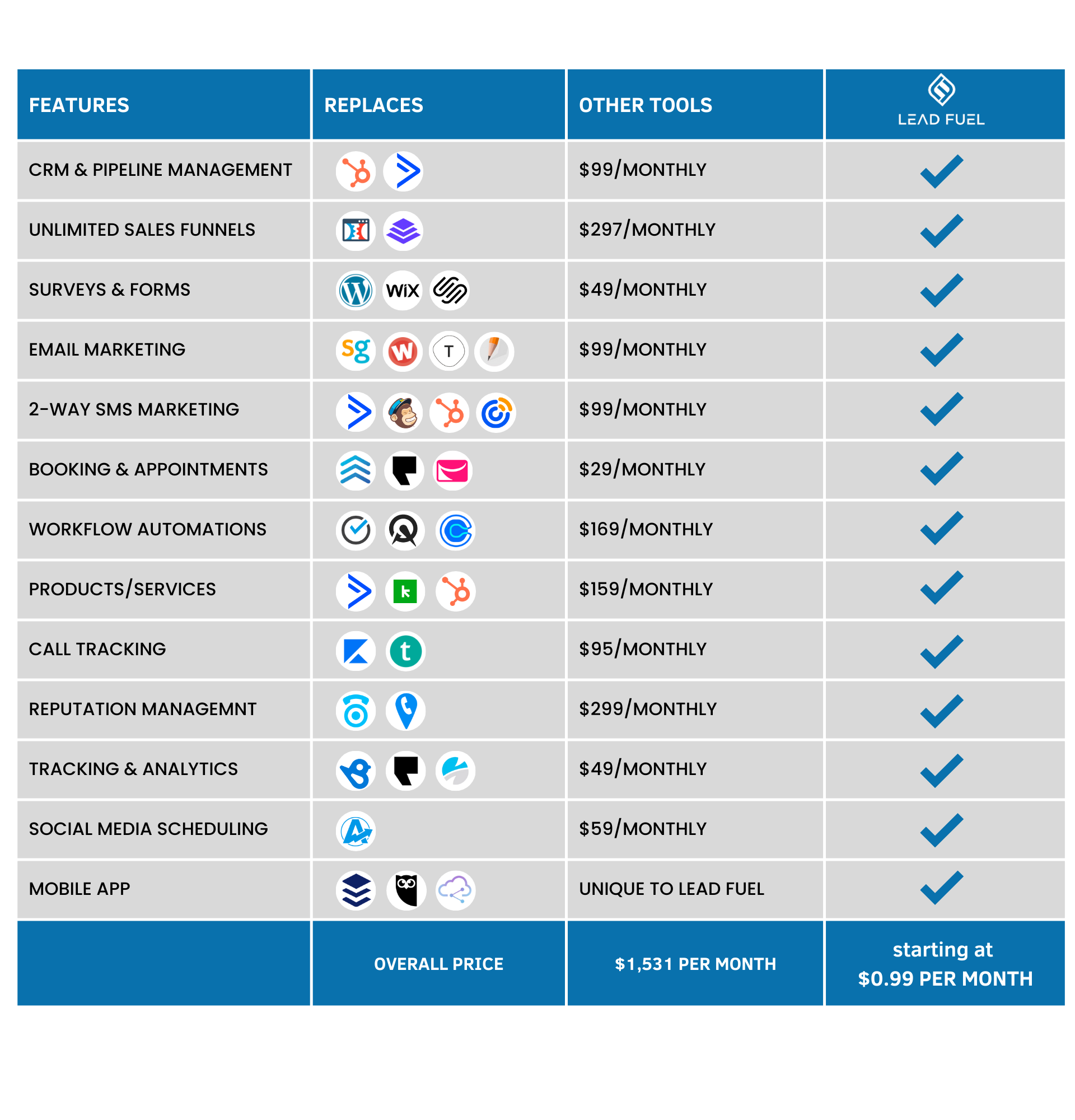 Replace over $1,531 in tools with our All in one Marketing tool and CRM
